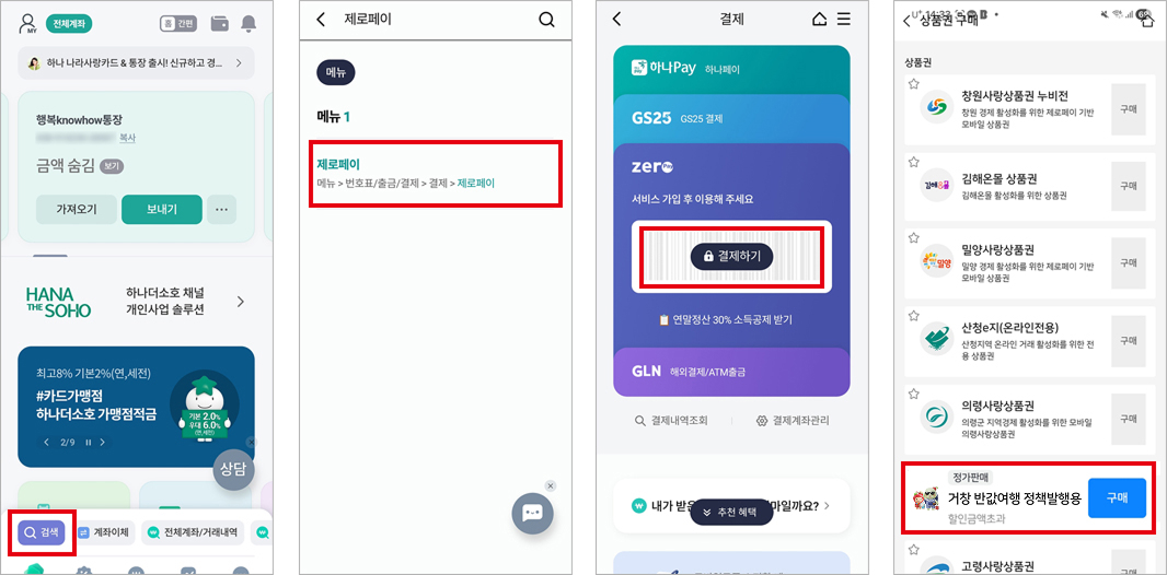 - 2. 메뉴에서 제로페이상품권 검색