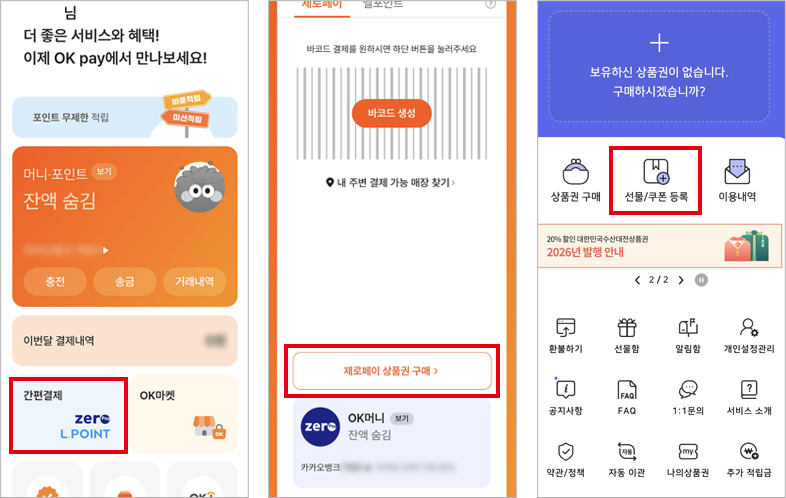- 3. 제로페이 앱 연결 후 선물/쿠폰등록