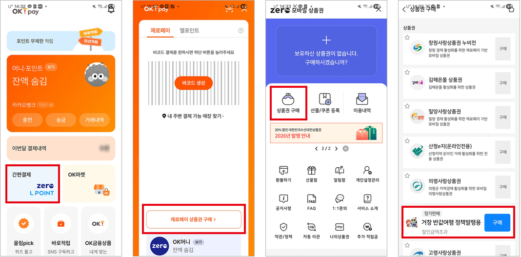- 2. 메뉴에서 제로페이상품권 검색