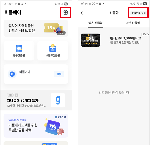 - 2. 오른쪽 상단 선물상자 클릭